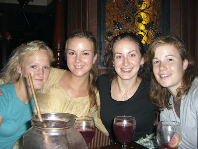 Last night was ladies night out. Five of us went out to the infamous Pub 28, a hole-in-the-wall favorite for locals and ex pats alike. You walk in through a hobbit door, and enter a wood-paneled dark cave with dim chandeliers, and Celine Dion crackling softly through crappy speakers. Clustered around tables were groups Egyptian men, and a few scattered European couples. We were the only group of girls, and didn't go unnoticed. The sangria pitchers were $8. Best sangria ever.